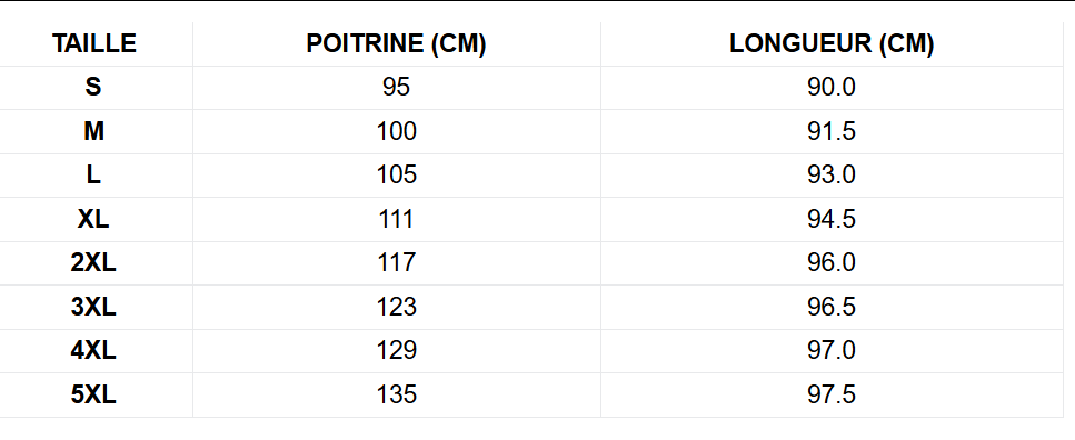 Disponible du S au 5XL, pensée pour mettre en valeur toutes les silhouettes.